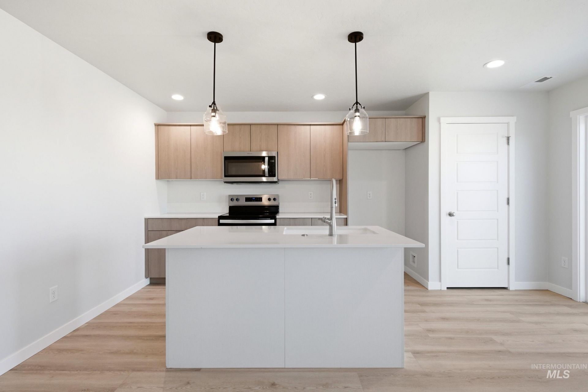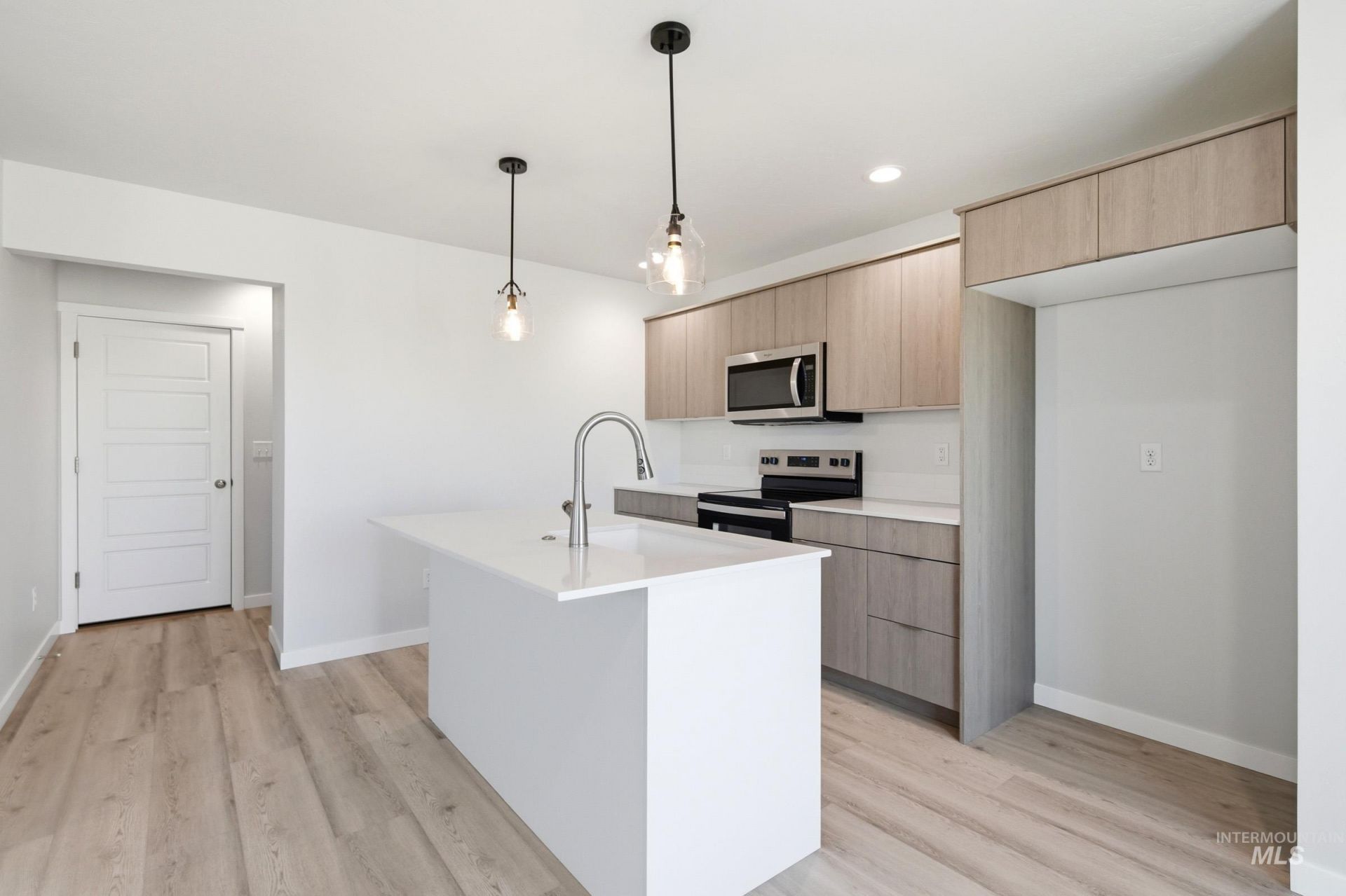 Get $10K YOUR WAY! Ask a Sales Specialist for details. Embrace the comforts of a brand new home in Caldwell, Idaho. The Sandhill 1492 welcomes you with an open concept main level where the living, dining, and kitchen areas come together to create a bright and inviting space for both everyday living and effortless entertaining. The kitchen comes with stainless steel appliances and stylish solid surface countertops, adding both functionality and aesthetics to the kitchen. A convenient powder bath and easy access to the backyard add comfort and functionality to the layout. Upstairs, the primary suite offers a private retreat with its attached bathroom and a spacious closet, while two additional bedrooms and a full bath provide flexibility for hosting or creating a dedicated workspace. The laundry area is thoughtfully positioned upstairs for added convenience. Full landscaping and fencing is included, and the HOA provides exterior maintenance, roof care, and lawn upkeep for a low maintenance lifestyle. Photos are of the actual home!