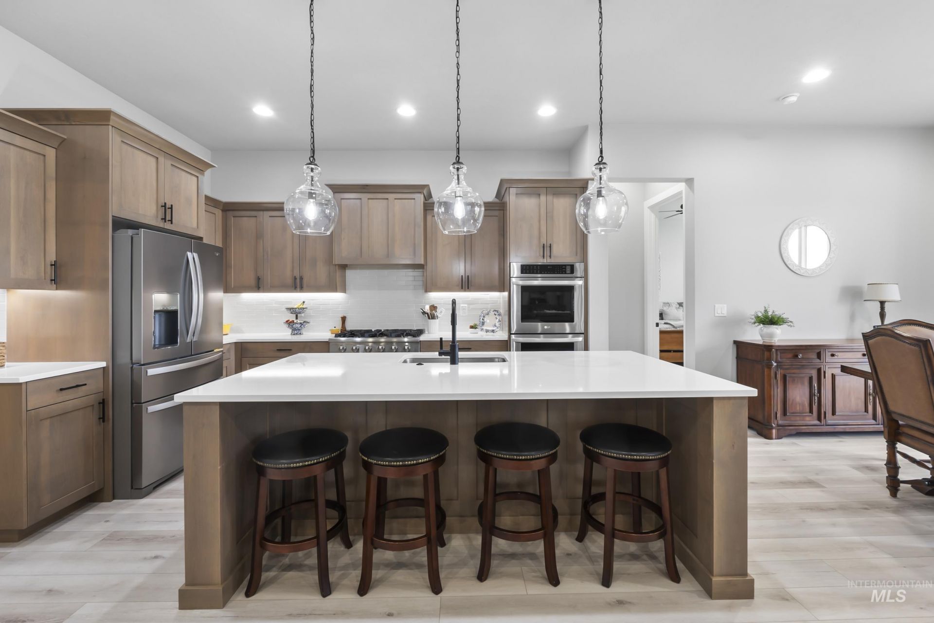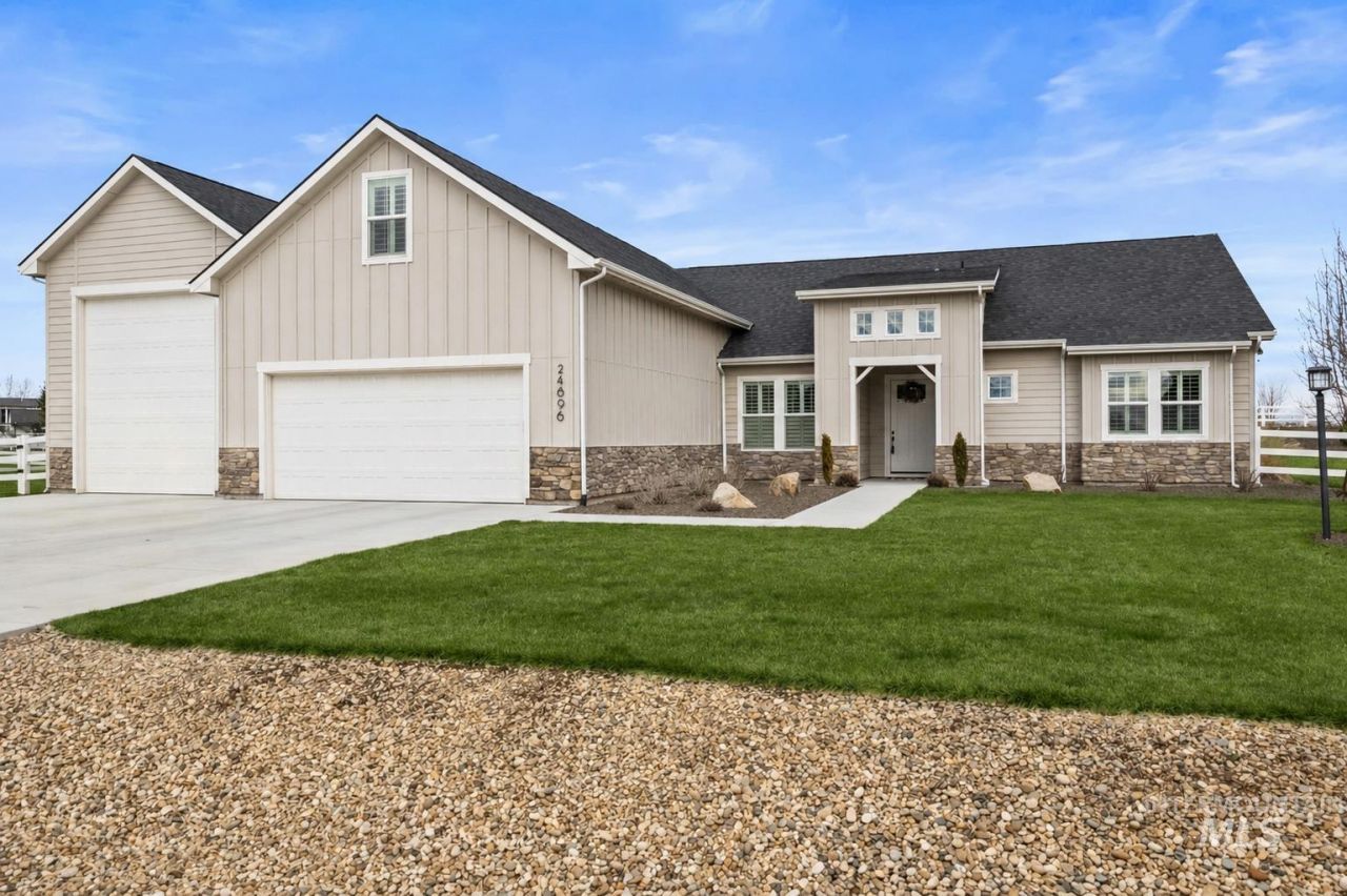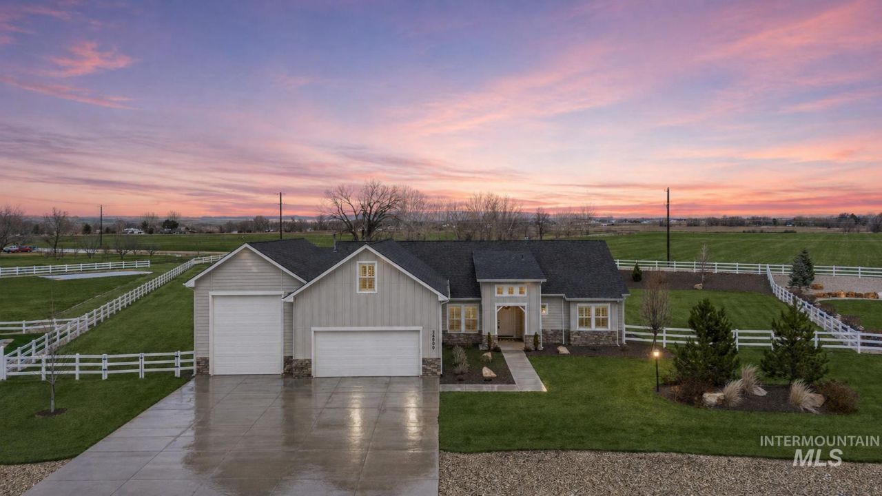 Welcome to refined country living in the heart of Middleton. Set on 1.4 beautifully landscaped acres with sweeping views of Bogus Basin and the Emmett Butte, this meticulously maintained, turn-key residence offers 2967 square feet of thoughtfully designed living space. Inside, a well-executed split floor plan provides both privacy and functionality, featuring a dedicated office for remote work and an expansive upstairs bonus room ideal for a media space, playroom, or guest retreat. High-end finishes elevate every corner of the home ? from real wood shutters and a striking full-stone gas fireplace to the beautifully appointed kitchen complete with stainless steel appliances and a gas range built for both everyday living and entertaining. Designed for comfort and efficiency, the home also includes a water softener and filtration system, while a large covered patio invites you to relax and take in Idahos breathtaking sunsets. The property truly sets itself apart outdoors. A massive 43-foot RV garage with rear roll-up access offers exceptional storage, workshop, or hobby space. With chickens and livestock permitted, you can fully embrace the rural lifestyle ? all while remaining just minutes from town amenities. This is where space, views, and thoughtful upgrades come together to create the lifestyle youve been waiting for.