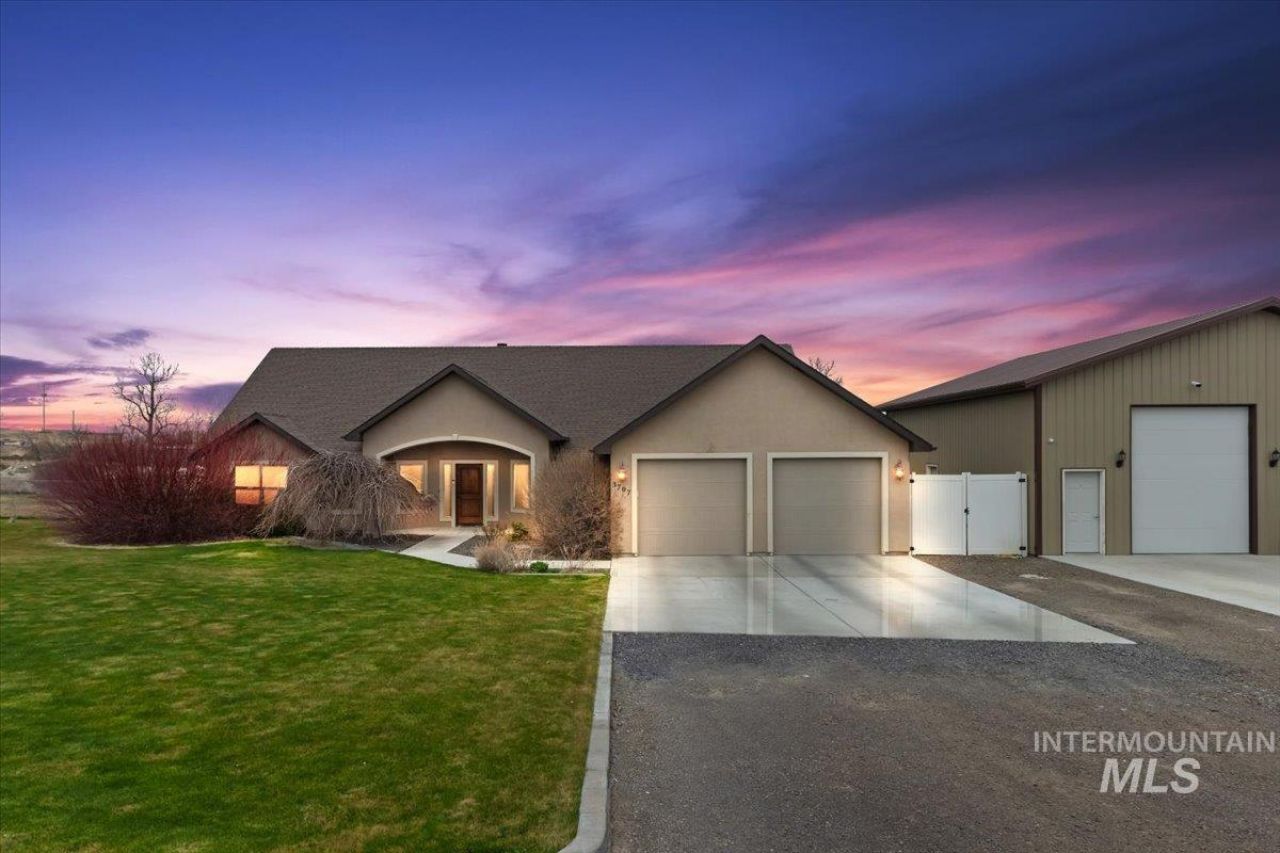 Hard-to-find 1-acre country property with a large SHOP, 5 bedrooms, and RV parking! This well-designed 5-bed, 2.5-bath home offers space, flexibility, and functionality both inside and out. Inside, the home offers a welcoming living room with a wood fireplace and an office just off the front entry, ideal for working from home. Hardwood flooring highlights the entryway, formal dining room, and kitchen. The kitchen includes granite countertops, a center island with soft-close drawers, and plenty of workspace. The split-bedroom floor plan provides privacy for the primary suite with double vanities, a corner jetted soaking tub, separate tile shower, & a private patio door. The laundry room features tile flooring & a convenient pantry. Cat 5 wiring runs throughout the home, & the system includes zoned heating for the main & upper levels along with a heat pump with newer compressor & electric water heater. Upstairs offers flexible living space with a family room, storage room, ½ bath with tile flooring, & a theater room. Outside youll find garden space, RV parking, & a well with newer pump & motor. The approx. 25�40 insulated shop features a 12�14 overhead door, concrete floor, propane heater, wood stove, & a 10-ft lean-to. Steel siding with stucco accents & a finished garage complete this well-equipped country property. A must-see property! Call to schedule your private showing today!