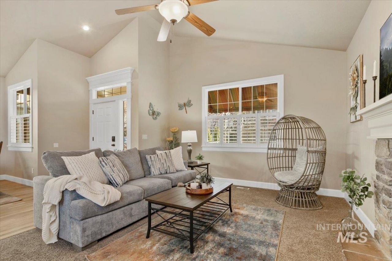 One of Meridians most beautiful neighborhoods that offers you a wonderful blend of modern living, mature foliage and community charm. With its picturesque surroundings and diverse amenities, Heritage Commons beckons homebuyers seeking tranquility and convenience. Discover this exceptional Brighton-built home; step inside to an inviting, open-concept design filled with natural light from oversized windows, creating a bright and welcoming atmosphere throughout. The main level boasts a generous living room with a cozy fireplace?perfect for relaxing evenings?and an elegant dining area ideal for everything from casual family meals to sophisticated gatherings. A spacious bonus room upstairs offers endless possibilities, whether as a playroom for kids, a home theater, or an entertainment hub. This thoughtfully designed home features three bedrooms, including a convenient main-floor primary suite. Roof was replaced in June 2023 and appliances replaced in September 2023. Nestled in this sought-after neighborhood, youll enjoy easy access to multiple top-rated schools, shopping, dining, and recreation, plus exclusive community amenities like a pool, playground, holiday activities, large private park and community center. This is the perfect blend of quality craftsmanship, comfortable living, and prime location.