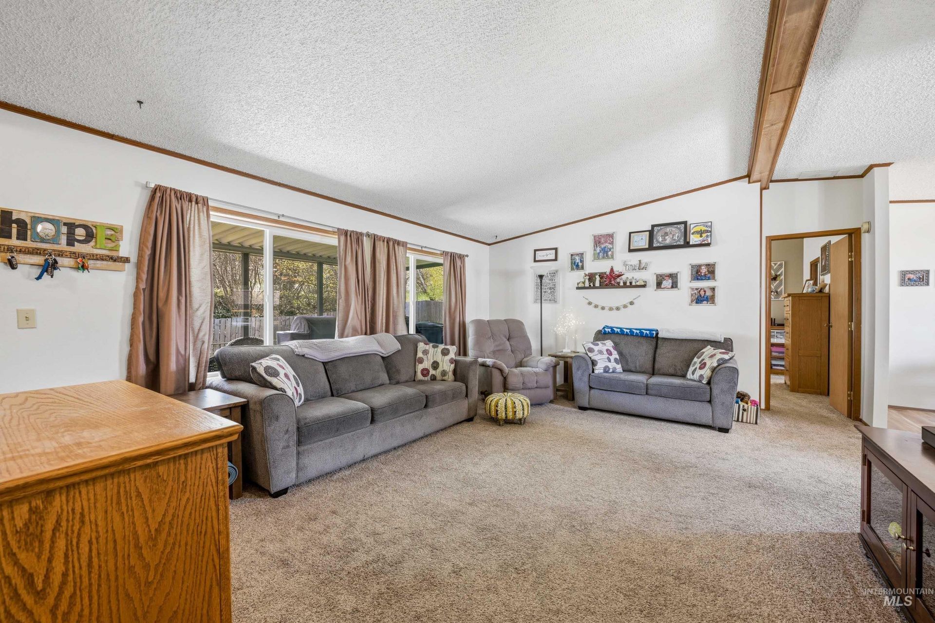 Dont miss this well cared-for 3 bedroom, 2 bathroom home that offers comfort, style, and a functional layout. Enjoy the inviting covered front porch and a spacious, fully fenced yard. Inside, the open floor plan features vaulted ceilings, an updated kitchen that includes a tile backsplash, new flooring, ample counter space, and abundant storage, adjoining the spacious dining area perfect for everyday living. The primary bedroom offers double closets and a private full bath. Recent updates include a new furnace and newer water heater for added peace of mind. Step outside to a covered deck ideal for relaxing or gatherings. Additional highlights include great parking and two storage sheds for all your extras. A move-in ready home with thoughtful updates and plenty of space inside and out!