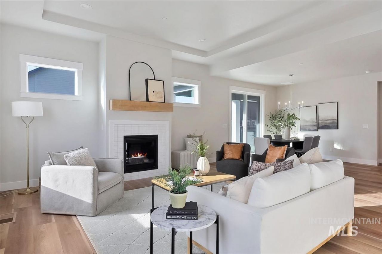 The London by Whitepeak Homes, is a single-level craftsman-style gem with a brilliant split-bedroom layout and a bright, open great room design. The open-concept kitchen and great room, complete with a gas fireplace and adjacent covered rear patio, create an ideal space for entertaining. The kitchen impresses with a large quartz island, custom cabinetry, upgraded appliances, and a walk-in pantry. A private office or media room adds versatility nearby. The primary bedroom offers a luxurious escape with split vanities and a spacious walk-in closet. Fencing is included, rounding out this stunning home! Discover Hidden Mill, an enclave of 20 semi-custom homes on a private hidden cul-de-sac in the heart of Middleton. The exclusive neighborhood sits alongside a tranquil canal next to a community path that takes you right to downtown, nearby community parks, and local elementary school. Dont settle for just another house, discover your Idaho dream home.