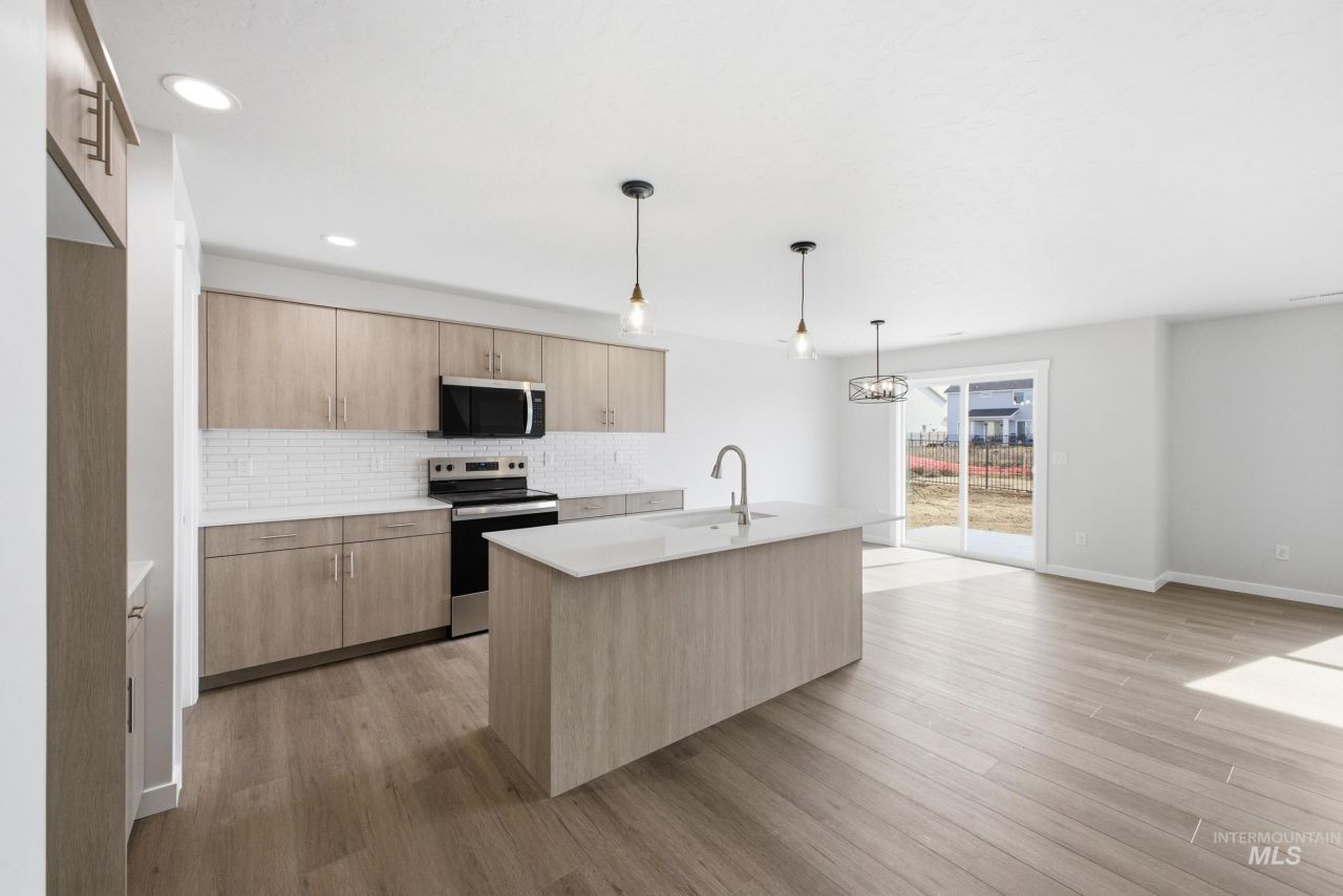 Get Lucky with 3.49% ? promotional rate available! Ask a Sales Specialist for details. Embrace the comforts of a brand new home in Meridian, Idaho. The Hugo 1650 blends charm with practicality, welcoming you into open, inviting living spaces that feel instantly comfortable. The kitchen comes with stainless steel appliances and stylish solid surface countertops, adding both functionality and aesthetics to the kitchen. Just beyond the dining room, easy access to the yard invites fresh air and outdoor enjoyment. Upstairs, the primary suite spans the rear of the home and offers a serene escape with an expansive closet and a generously sized en suite bath. Two additional bedrooms, a full bathroom, and a conveniently placed laundry room complete the upper level with thoughtful functionality. The garage provides ample room for parking, storage, or hobbies, adding even more versatility to the homes design. With its adaptable layout and refined touches, the Hugo 1650 supports a lifestyle of comfort and ease from the moment you arrive. Potential RV parking available. Photos are of the actual home!