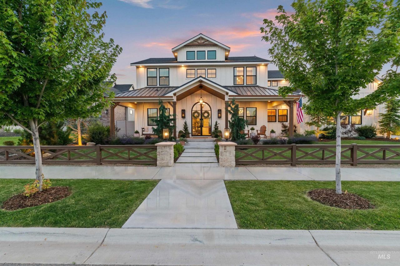 Step into a life where every moment feels elevated. This exceptional Custom Luxury Residence?set within the prestigious enclave of The Keep?blends Modern French Country inspiration with the kind of comfort, warmth, and effortless sophistication that turns a house into a sanctuary. Resting on over half an acre, it includes a private-entry Casita that creates the perfect haven for guests, extended family, or quiet weekend retreats. From the very first step inside, the home sets a tone of refined living. Grand arched glass-and-iron doors, framed by softly glowing gas lanterns, open to cathedral ceilings that invite light and air to flow freely. Throughout this full custom home, curated details tell a story: artisan tilework, custom millwork, brass accents, and reclaimed wood from the historic Simplot Barn infuse each space with authenticity and soul. Designed for those who love to gather, cook, and celebrate, the home features alder cabinetry, mitered-edge quartz countertops, striking limestone fireplaces, and two chef-worthy kitchens?each equipped with 6-burner ZLINE gas ranges, premium appliances, and a butlers pantry that keeps entertaining effortless. A main-level office, an upstairs bonus room, a flexible additional living space, and a hidden tech nook offer room for creativity, productivity, and play. The 40 RV bay ensures that adventure is always within reach.
