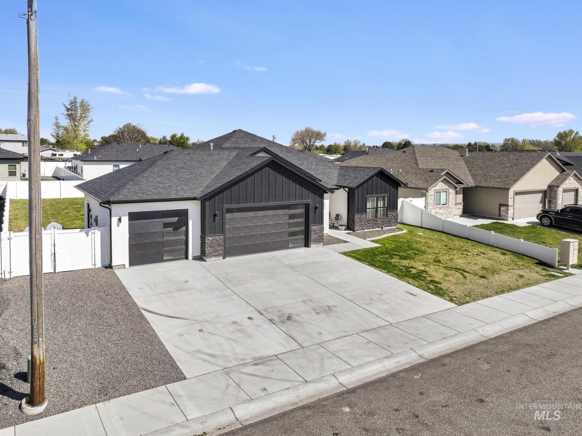 Seldom will you experience a better than new opportunity than in this three year old custom home with features that simply make for a great experience. From the moment you enter you have a sense of privacy and a feeling of spacious comfort with a floorplan that has terrific traffic patterns and flows easily. The kitchen has a well thought out working triangle and with upgraded appliances. The split bedroom plan, utility area and entry are well designed. For those who desire more garage space this 3-car garage has an expanded area for bike storage, a workout area or whatever your best use is. The primary bedroom and bath provides for a separate walk in shower, soaker tub, dual vanity and spacious closet. The covered patio and fenced yard is sure to please. Additional off street parking and RV parking is present. Stucco exterior with stone accents and no vinyl siding. Full rain gutters and French drain system in place. An exceptional offering in a price range that is loaded with extras.